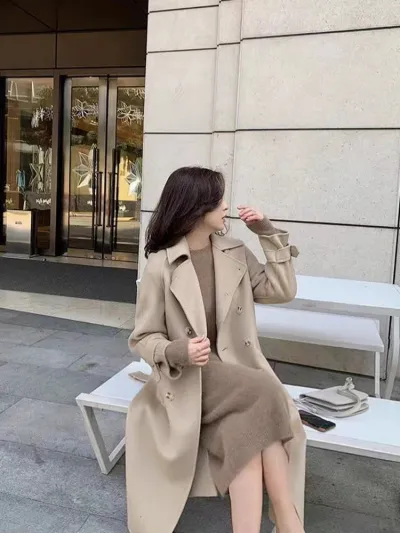 New High-end Women Wool Herringbone Loose Double-sided Wool Coat Temperament Handmade Natural Wool Fashion Jacket Autumn Winter