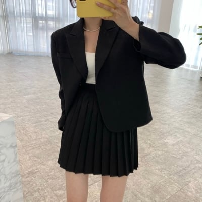 Women Two Piece Set Outfits Long Sleeve Coat And High Waist Pleated Mini Skirt Elegant Korean Style Casual 2 Piece Sets
