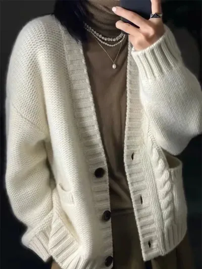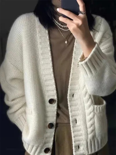 Sweater coat women's autumn and winter high-end loose lazy twist knit 100 pure cashmere cardigan