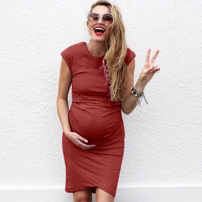 Popular Pure Color Tie-in Waist Pregnant Women's Dress Soft And Comfortable Cotton Spot Vestidos Gestante Pregnancy Dress