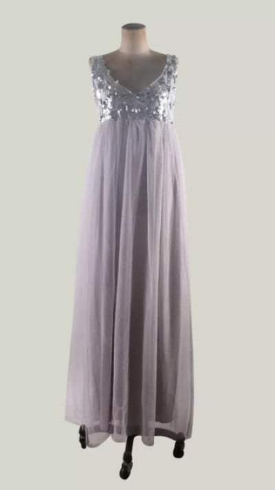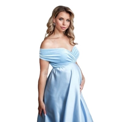 Fancy Maternity Dress For Photo Shoot Pregnant Women Large Swing Sequin Mesh Dress Elegant High Waist V-Neck Blue Long Dress