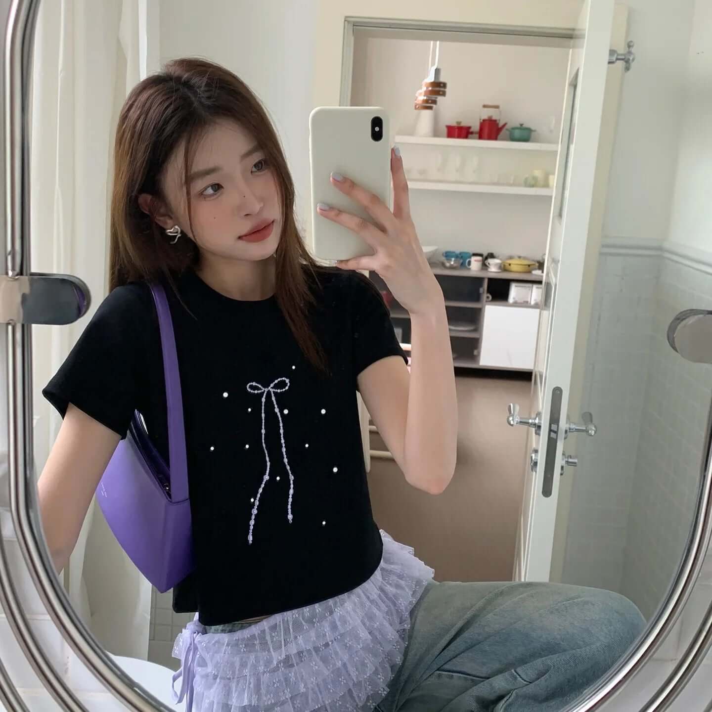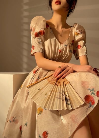 Graduation Gift Back to School Season Summer Dress Spring Outfit Dinner V Neck Print Nail Bead Chiffon Dresses Short Sleeve