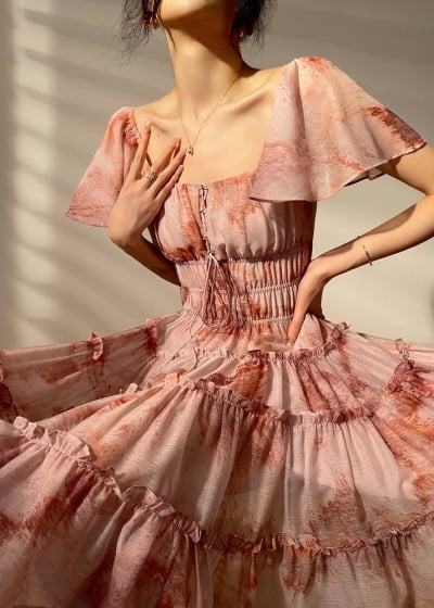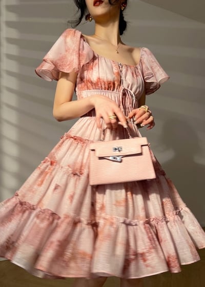 Graduation Gift Back to School Season Summer Dress Spring Outfit Bohemian Square Collar Print Chiffon Mid Dresses Short Sleeve