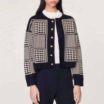 Autumn and Winter Women's Clothing Plaid Pattern Jacket Female Knitted Sweater Cardigan