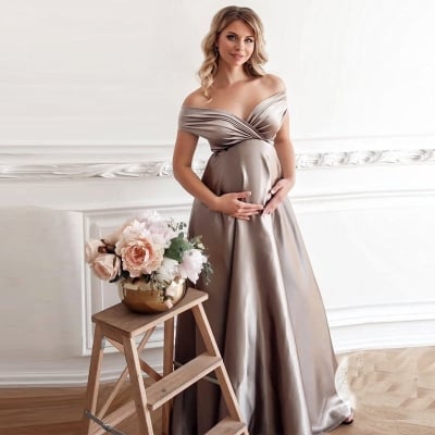 Silk Sexy Maternity Photo Shoot Dresses Long Baby Showers Party Evening Pregnancy Maxi Gown Photography Props for Pregnant Women