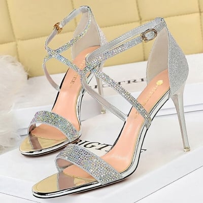Open Toe Women's Sandals Sequin Cloth High Heels Rhinestone Women Sandals 2022 summer Sandal Heels Stiletto Female