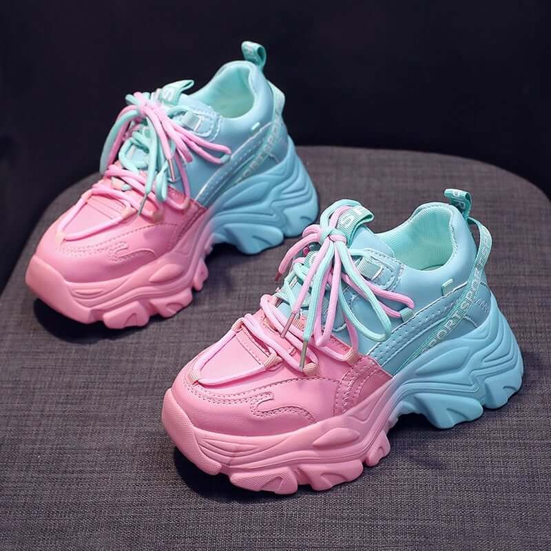 Women's Pink Chunky Sneakers Breathable Platform Sports Shoes Woman Lace Up Thick Sole Casual Shoes Zapatillas Mujer
